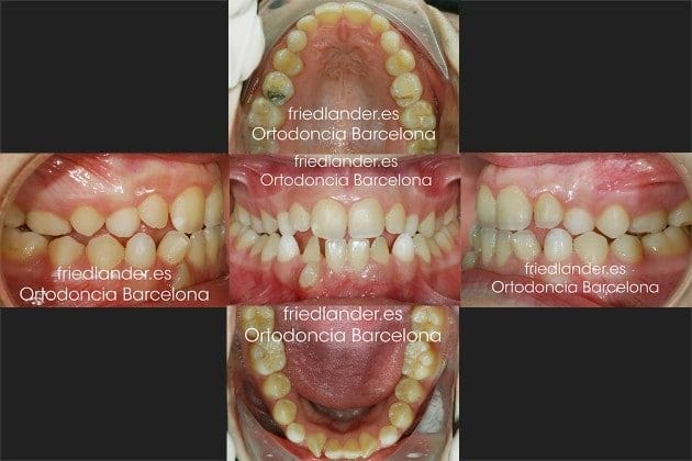 Esta paciente fue tratada con brackets convencionales y un disyuntor (aparato de expansión del paladar) durante 34 meses.